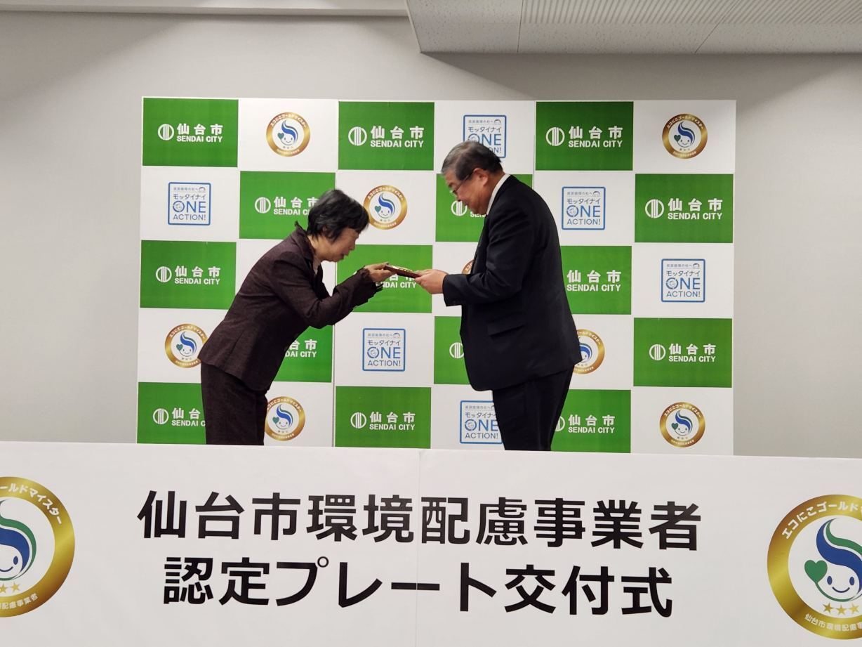 令和6年1月18日に仙台市環境配慮事業者認定プレート交付式が行われました。